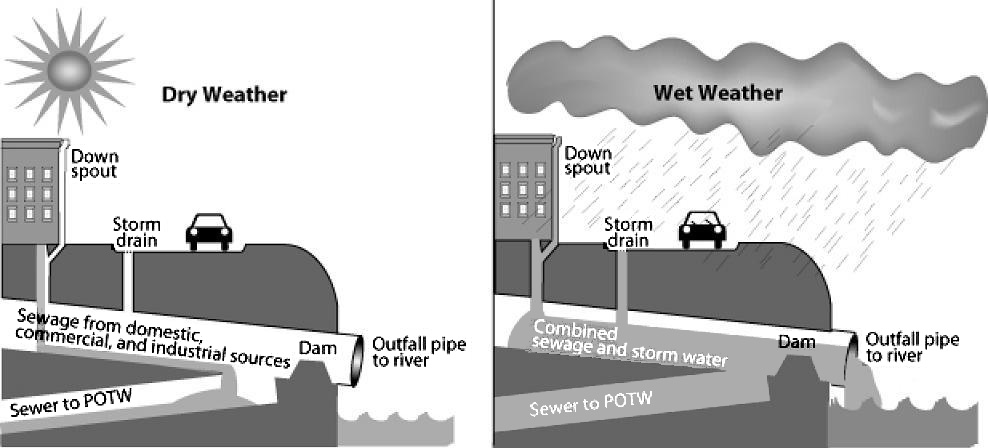 - Akron, like over 770 communities in the US, have a combined sewer system that catches both sewage and storm water. All of this goes to a waste water treatment plant.